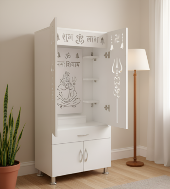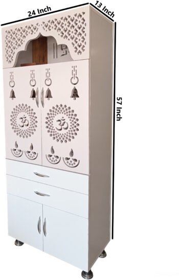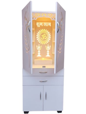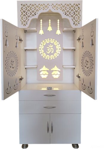 Woodaari White Wooden Temple for home and Office With decorative LED Light Engineered Wood Home Temple (Height: 130, Pre-assembled)