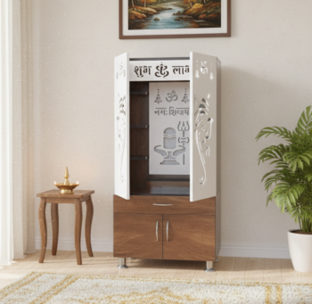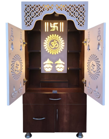 Woodaari Korean Design Pooja Mandir With LED Light Engineered Wood Home Temple (Height: 145, Pre-assembled)