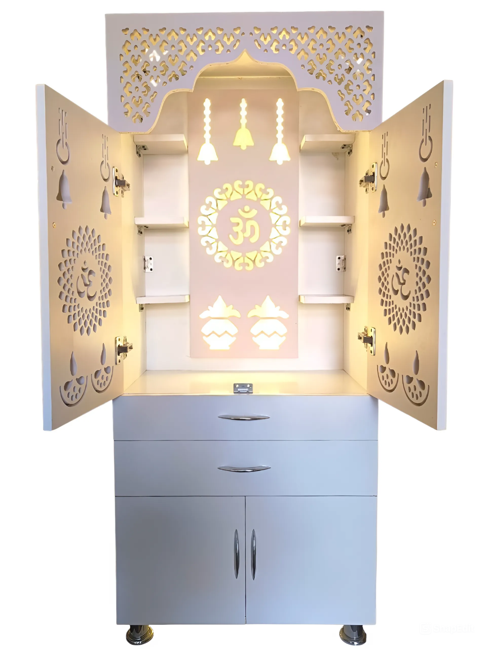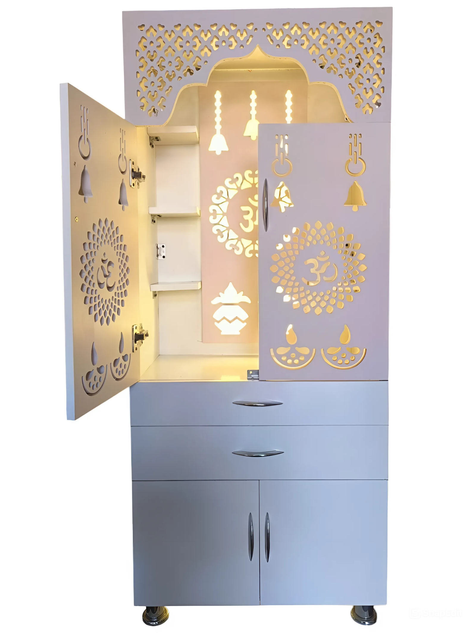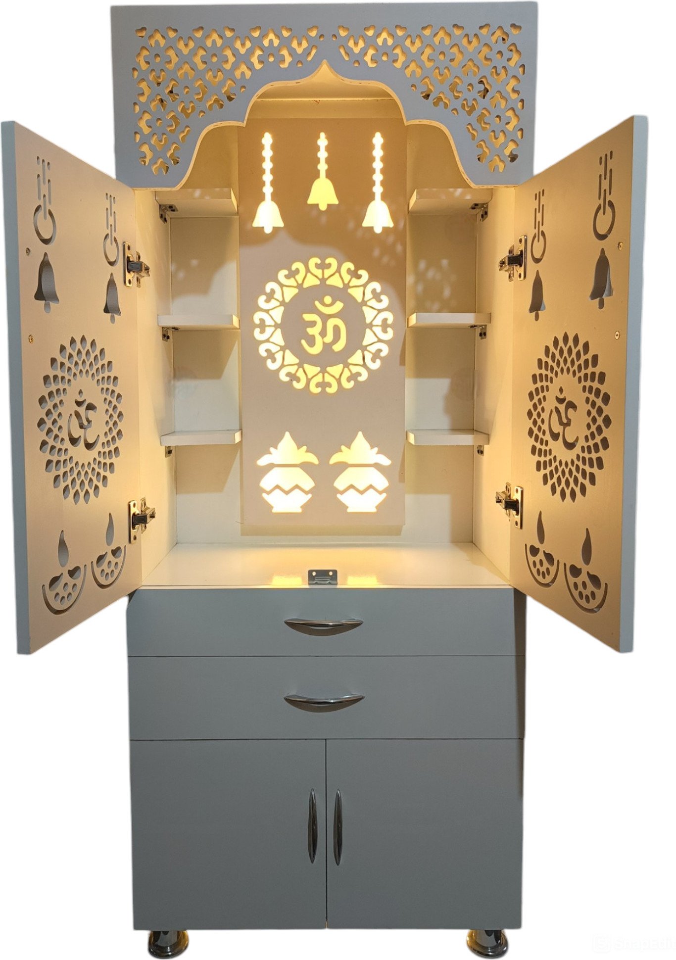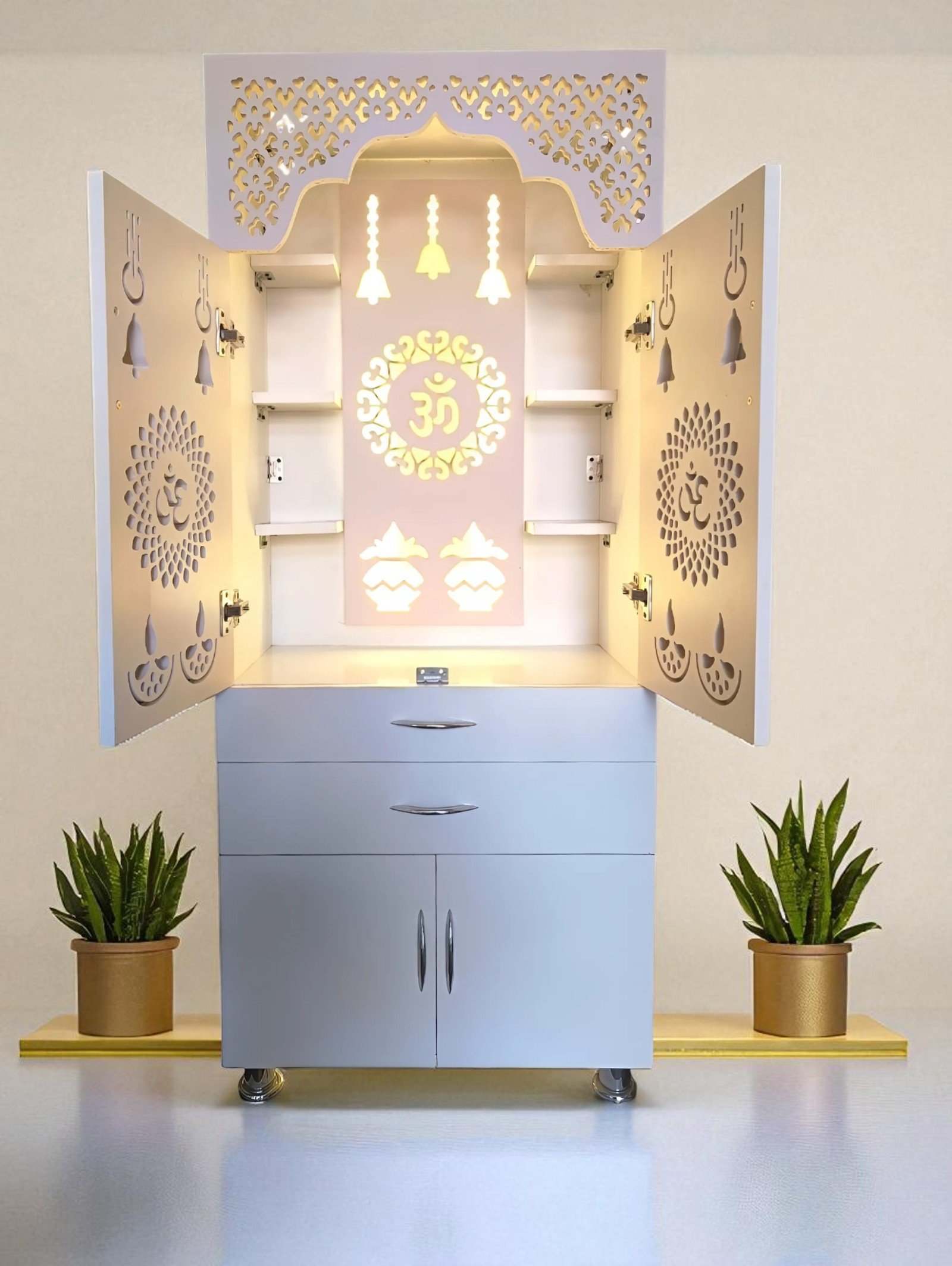 Elevate your home’s spirituality with this stunning white wooden temple. Handcrafted from premium wood for a beautiful, long-lasting design, Integrated LED light casts a soft, soothing glow, Compact size fits easily on shelves, tables, or altars. This stunning white wooden temple is the perfect way to cultivate a sacred space in your home. The warm, natural wood and gentle LED lighting work in harmony to create an atmosphere of profound calm and focus, making it an invaluable tool for your daily spiritual practice. Whether you’re an experienced meditator or simply looking to bring more peace into your everyday life, this temple is a beautiful and functional addition to any space. Its compact size allows you to place it anywhere, transforming any room into a serene sanctuary where you can connect more deeply with your faith and find respite from the stresses of daily life. Elevate your home’s spiritual energy with this stunning white wooden temple.